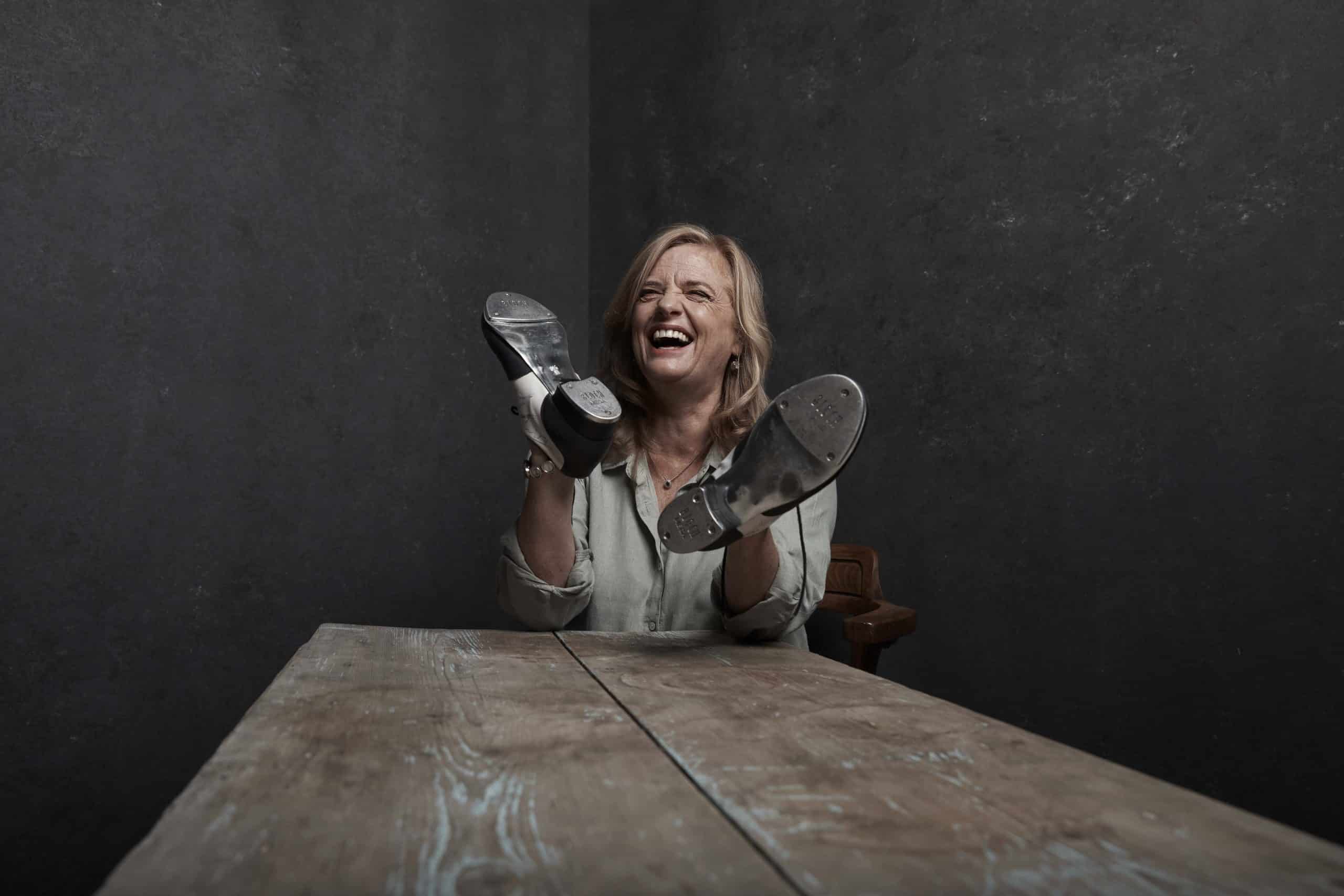 Kristen Dunphy, Wakefield’s creator and lead writer, holds up her tap dance shoes, which play an important role in the series. Photo credit: Damian Bennett