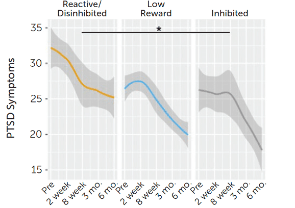 In the first 69 volunteers, all victims of car collisions, four patterns of response were seen, and were mostly replicated in an independent sample. In both samples, one subgroup – whose brains most actively responded to both threat and reward – was the most likely to continue having PTSD symptoms at six months.