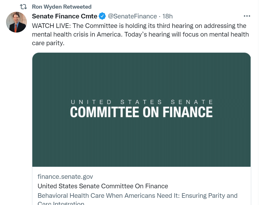 The United States Senate Committee on Finance held its third hearing on mental health yesterday in a bipartisan push to make high-quality mental health care accessible to all Americans.