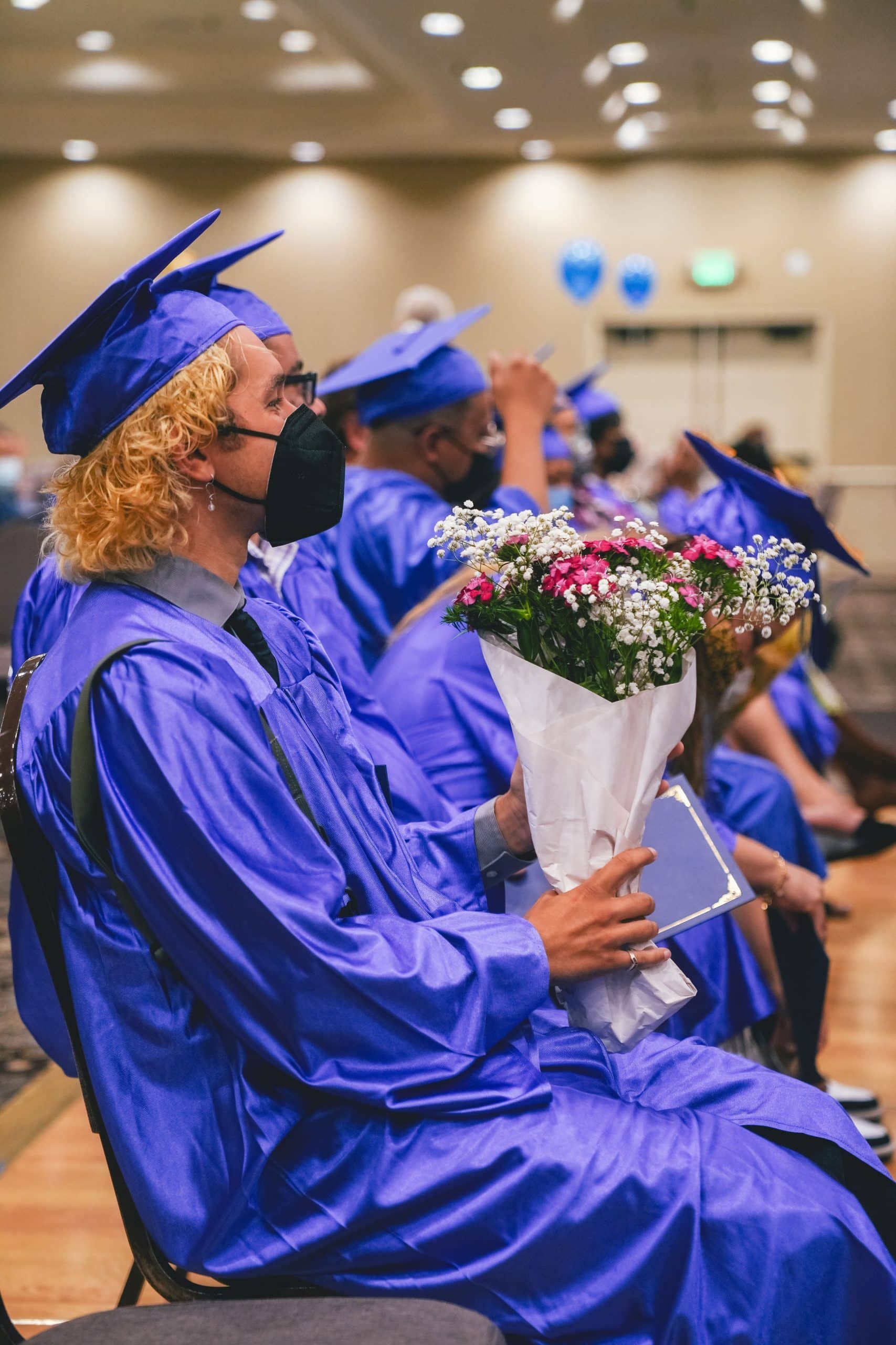 After Rodriguez collected his certificate on stage, he walked back to his family and got hugs and a bouquet of flowers. They planned to take the lunch back to his parents’ home.