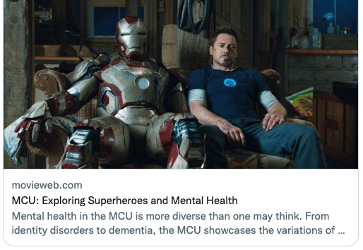 Superheroes in Marvel comics and movies grapple with a wide range of mental health issues from depression to PTSD to borderline personality disorder. These conditions often drive them to excess and force them to find some pretty weird coping strategies. But the fact the Marvel develops such characters as heroes may in itself help the global battle against an enemy: stigma! MovieWeb has a rundown.