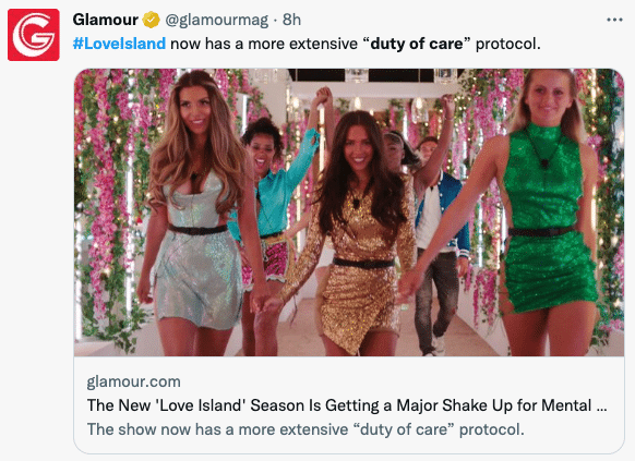 Reality TV may be one of the last places you’d expect producers to emphasize mental health, but that’s now happening for cast members on the upcoming season of the Love Island dating show. Since 2018, two previous contestants and a former host have died by suicide. In response, the production team has changed several parts of the behind-the-scenes process, according to Glamour. Sure to be noticed: the absence of contestants from all social media while on the show. The move will “protect both the Islanders and their families from the adverse effects of social media,” producers told Glamour.