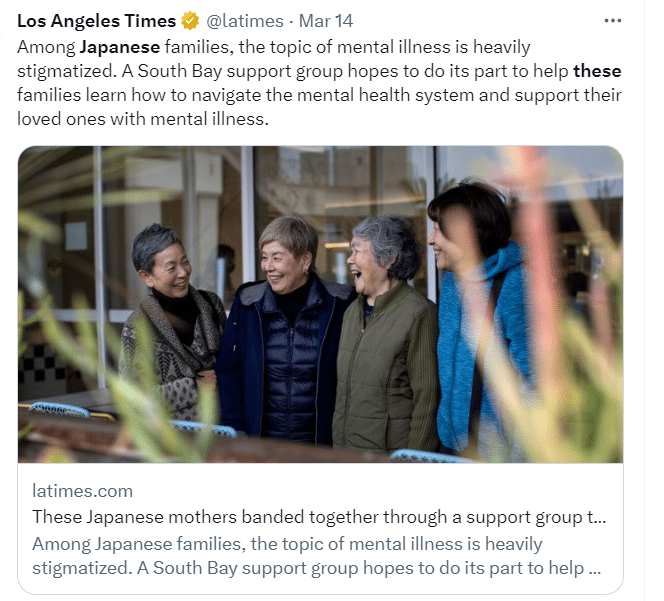 In more hopeful news, you’ll meet some Japanese-American moms with mentally ill children who are banding togeher for support and to counter the stigma around mental health.