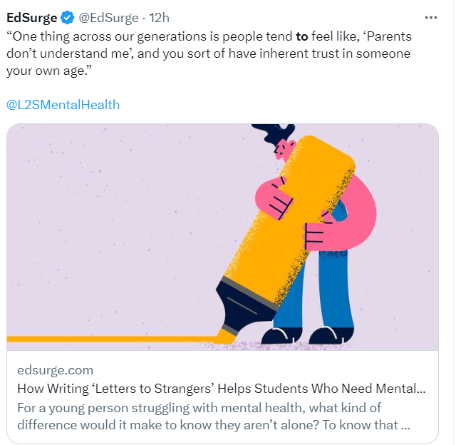 Struggling youth write away loneliness, heartache, and the stigma of mental illness by sending letters to one another. “One thing across our generations is people tend to feel like, ‘Parents don’t understand me’, and you sort of have inherent trust in someone your own age,” said Diana Chao, founder of Letters to Strangers. She spoke to EdSurge about how the nonprofit organization she founded nine years ago is changing lives.