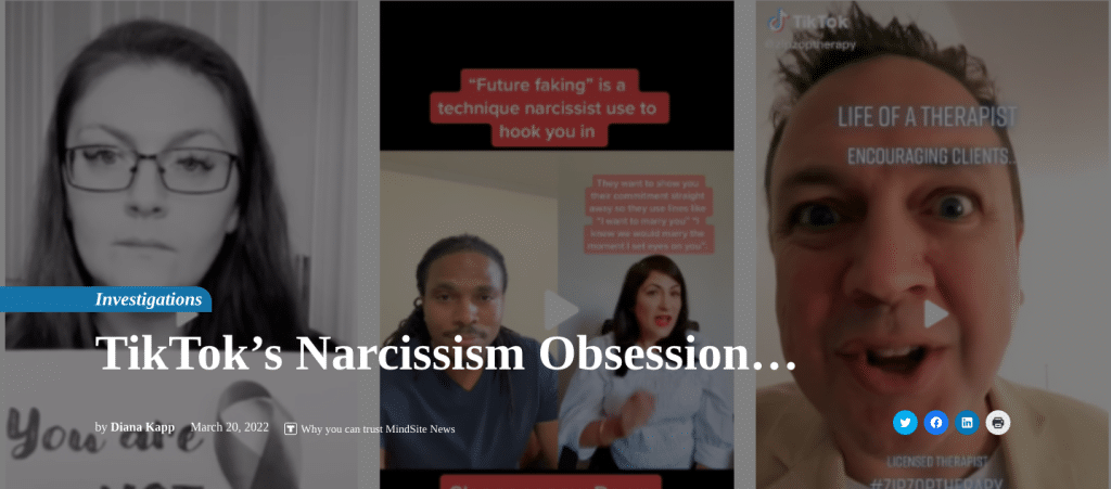 MindSite News explored this issue last year in “Diagnosis by TikTok” and “TikTok’s Narcissim Obsession.”
