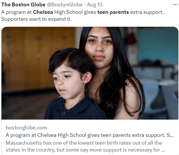 “They” are Karissa Barbosa and Brenda Peña, program liaison for the Massachusetts Pregnant and Parenting Teen Initiative and coordinator of social work at Chelsea Public Schools, respectively. “I think there’s this stigma…(around) what it means to be a young parent,” Peña said. “People see it as, ‘This is going to hold me back. … I’m not going to be able to successfully finish high school. And that’s not true, it’s just a matter of how much you’re willing to invest, and how you support those students.”