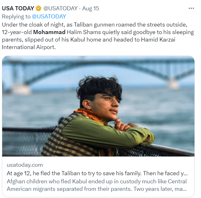 Two years ago, at only 12 years old, young Mohammad fled his Kabul home in the cover of night with less than $5, his ID card, and a cell phone to catch a flight out of Afghanistan to escape Taliban rule. No matter that his parents and siblings wanted him home, or that he couldn’t read or write, and that Taliban forces had already taken over the airport, beating and even killing Afghans trying to evacuate. It was worth the risk, Mohammad told USA Today. A nation under Taliban rule would make it nearly impossible for his younger siblings to get an education and achieve their dreams of being a teacher and a doctor. “I wanted a good life for them,” he said.