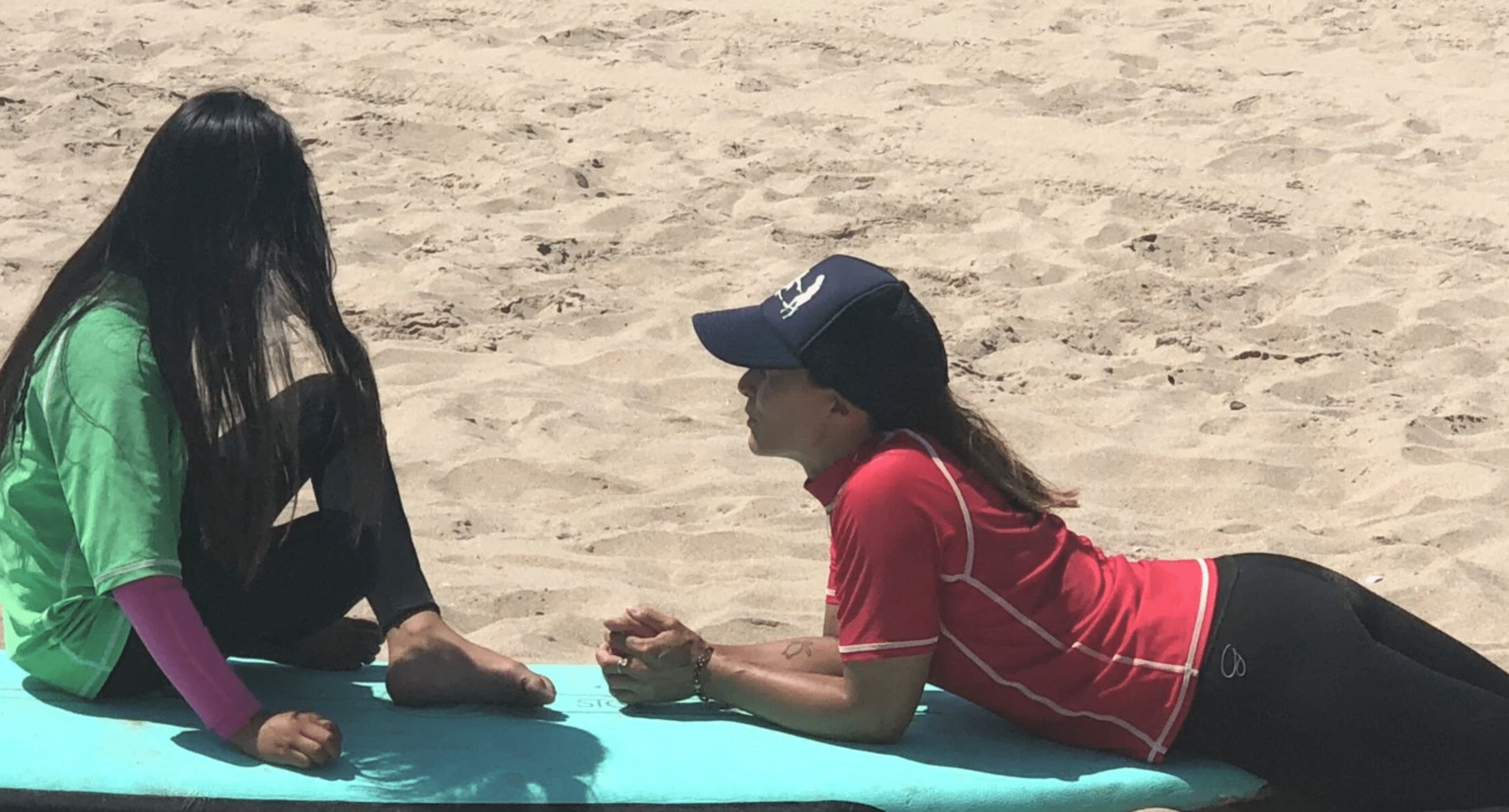 Some surf therapists emphasize the physical aspects of the sport, others the group support and the conversations on the beach. Natalie Small, for instance, thinks the group support is particularly important, and each two-hour-session begins and ends with the group circle, people sharing how they feel and what they hope to gain and leave at the ocean. “Before I started surf therapy, clients often focused on me as the therapist,” she says. “After the course, the participants not only have more tools for improving their mental health, but they also have a community with which they can continue to meet on the beach.”
