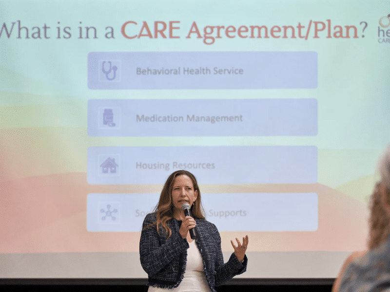 Kelley’s department is training its workers and peer supporters — people who also have mental illness or have recovered who can help guide a respondent through CARE Court — in a well-regarded communication method called LEAP to persuade respondents to accept care. It will offer services to those in CARE Court under a “whatever it takes” approach, whether it’s a ride to the doctor’s office, help enrolling in food stamps, addiction treatment or temporary housing.