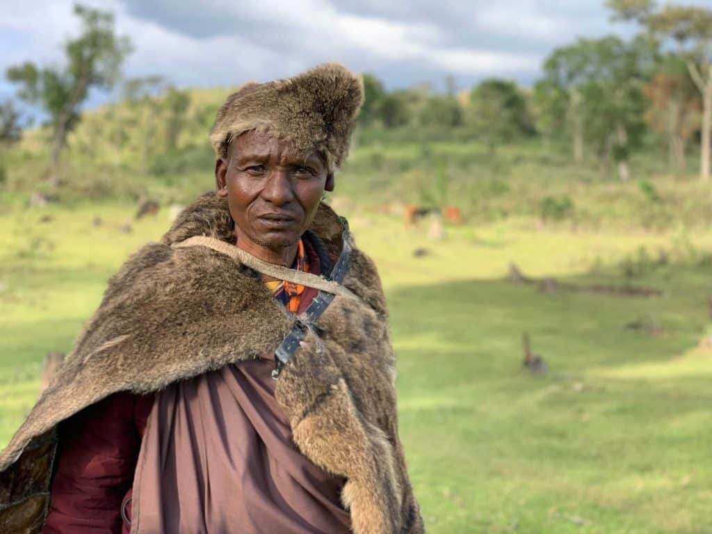Samuel Salaton, a member of the Ogiek community, stands on land right next to Mau Forest. Credit: Samrawit Gougsa / Minority Rights Group