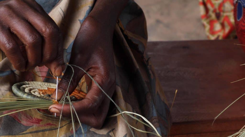 Livera, a member of the Batwa community in Uganda, weaves a traditional Batwa basket. Credit: Samrawit Gougsa / Minority Rights Group