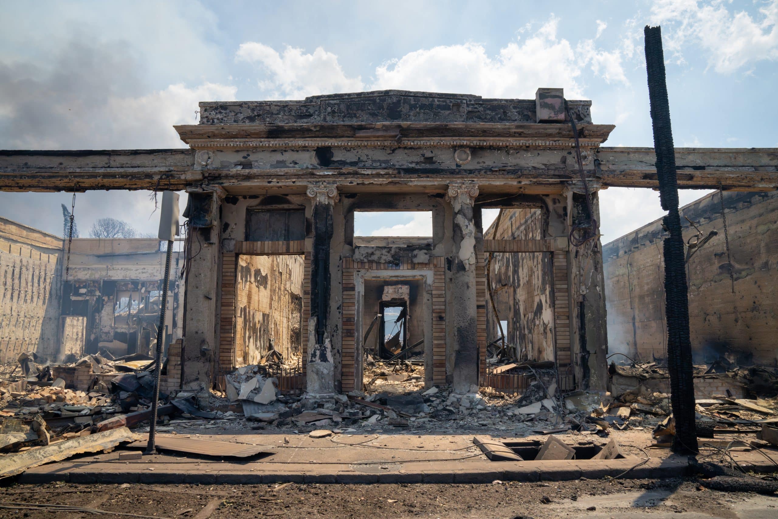 The old bank building and the previous home to the Peter Lik gallery sits gutted after the devastating fires that burned and destroyed Lahaina, Maui. Photo: Shutterstock