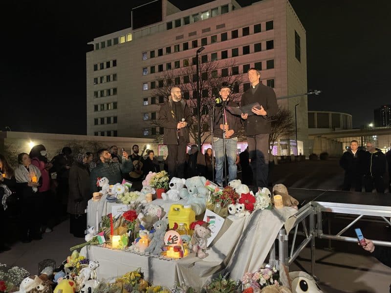 It was one of the first large-scale interfaith gatherings held in Detroit, with people from the Muslim, Jewish, Christian and Native American communities carrying candles, stuffed animals, and personal notes for a memorial at the center of the stage.