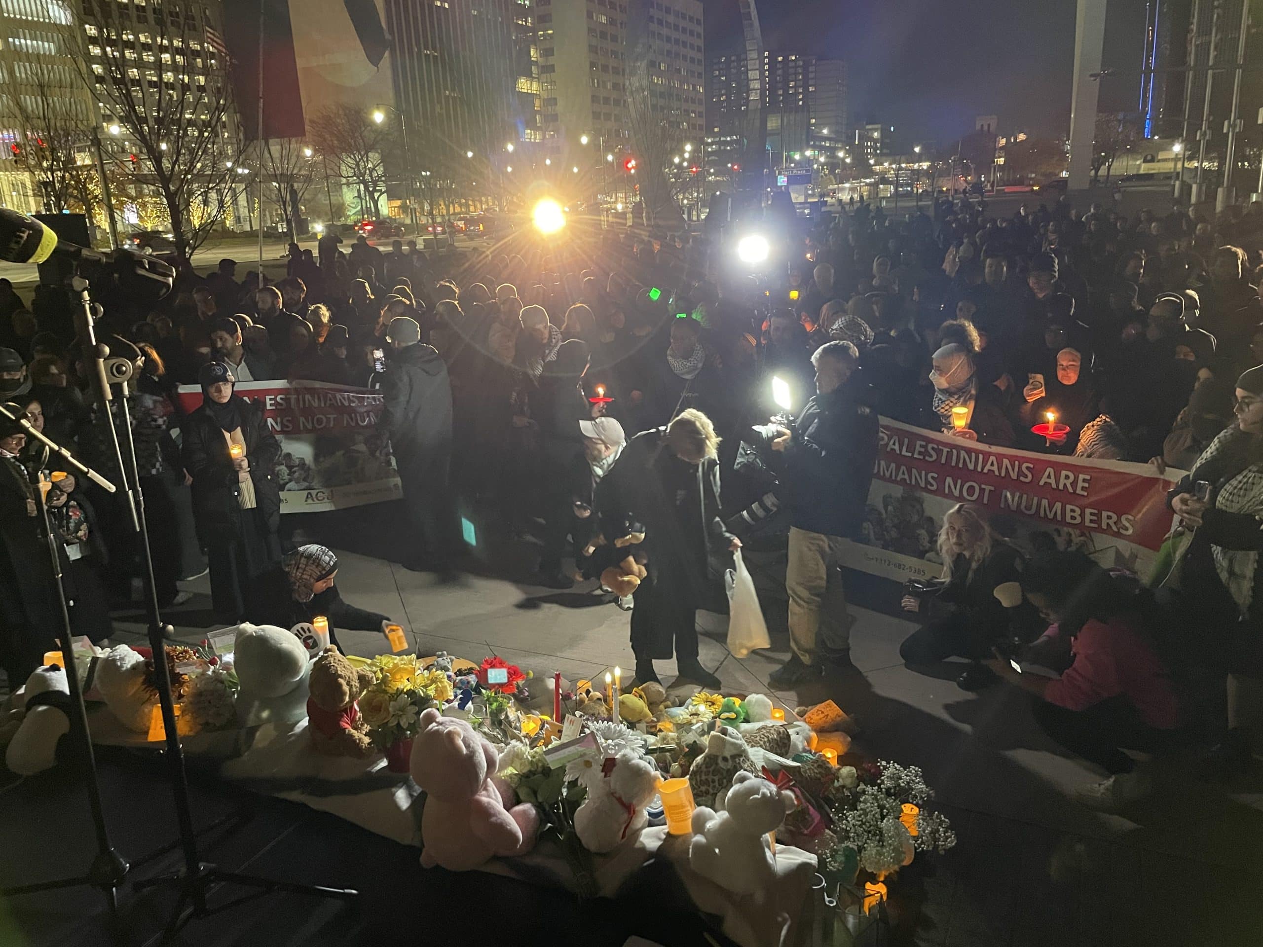 On Nov. 16, hundreds of people gathered at Detroit’s Hart Plaza, overlooking the Detroit River, to mourn the lives lost in the ongoing conflict. The “Rooted in Humanity: Mourn Innocent People Killed” event was organized by nearly 30 groups including the Michigan Muslim Coalition and Jewish Voice for Peace of Detroit as one way to address people’s feelings and boost mental health among Palestinian, Arab American, Jewish and Muslim communities.