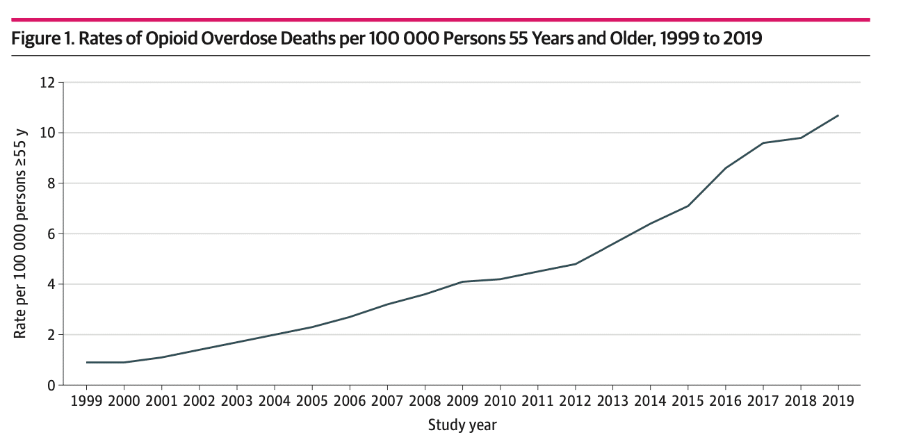 Both are almost always full, and the need continues to grow. In the first 11 months of 2023, an estimated 316 people over 55 died of an overdose in San Francisco, 42% of all the overdose deaths, according to the San Francisco Medical Examiner. Overdose deaths are rising rapidly among older people all across the country.