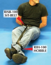 When restrained this way, the person is placed in handcuffs and their feet are bound. Sometimes, a belt is used to bind their hands to their legs or to “hogtie” someone by tying bound ankles to cuffed hands in a 90-degree angle while they are lying on their stomach. Hog-tying was found to be too dangerous for continued use by the U.S. Department of Justice as early as 1996.