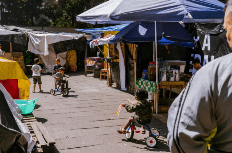 But in migrant camps that’s not always easy to achieve, as Joyce Zangilu, 13, knows. Zangilu’s whole world was confined to the Plaza Soledad migrant camp in Colonia Centro in Mexico City; her mother wouldn’t let her leave its bounds for fear of her safety—not to work under-the-table (because she’s also “too young”) nor go play with volunteers who come once a week. Worst of all, she says, her mother wouldn’t let her have a phone.