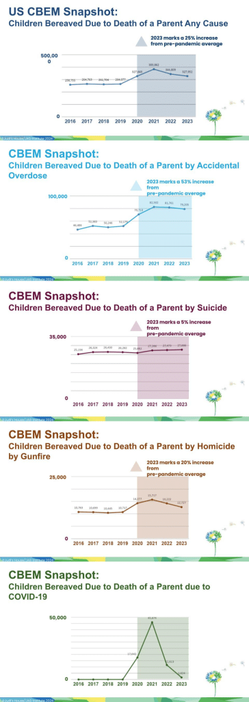This is the second part of Forgotten Children, a series on the tragic and underreported problem of childhood grief – and efforts to address it. Parental death has been rising in the U.S. due to COVID-19, the overdose epidemic and gun violence. A revision to this story provides an updated table on the top causes of childhood bereavement through 2023.