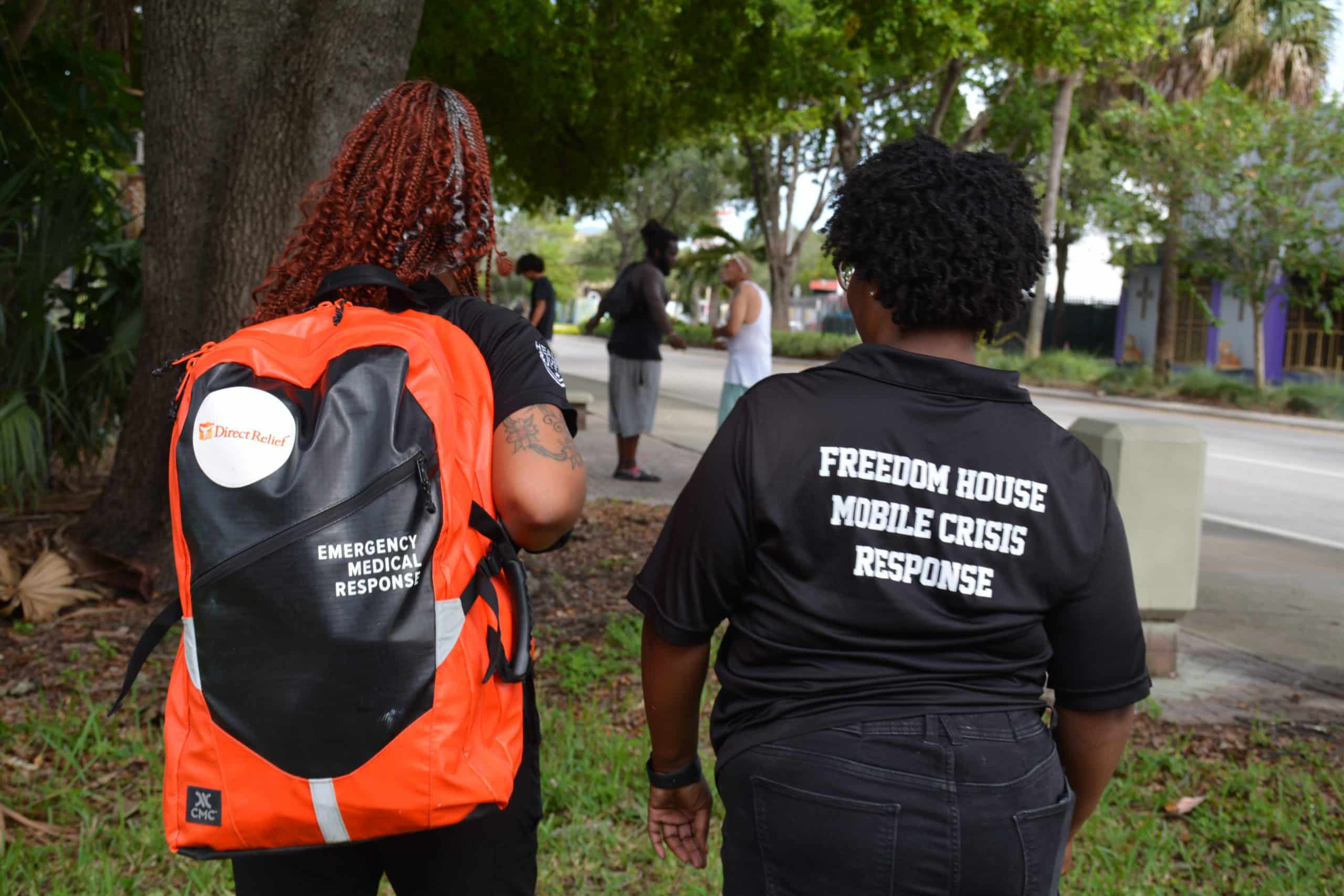 Just four streets over from Armstrong’s home is the office of Dream Defenders – a grass-roots advocacy and action organization led by Black women that was founded in the aftermath of the 2012 killing of Trayvon Martin. The group runs the Freedom House Mobile Crisis Unit, which responds to mental health crises without involving police in the majority-Black Liberty City neighborhood. See a deeper exploration of the Freedom House mobile crisis program here.