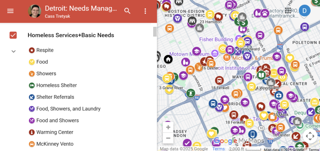 In order to help someone, you have to know how to – that’s where Cass Tretyak initially struggled in her work with unhoused folks. Clients needed help meeting basic needs like food and emergency shelter, but she didn’t know where to direct them. “If this is overwhelming to me,” she said to BridgeDetroit, “how must the client feel when they are in crisis mode?” So she started assembling a solution: The Detroit: Needs Management Map. In just two years, it’s become a must-have tool for Tretyak and her colleagues in the field.