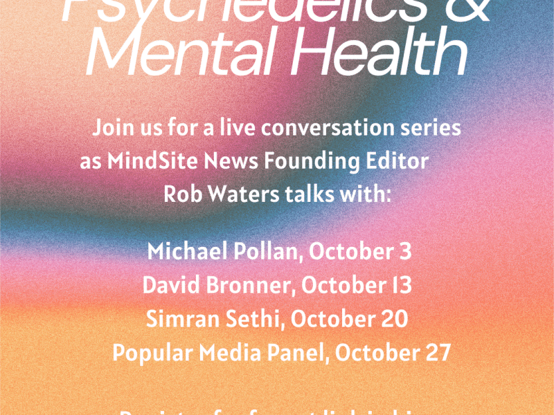 MindSite News—the only news site dedicated exclusively to reporting on mental health in America—is launching a live public conversation series that will take place throughout the month of October to engage the public in conversations about psychedelics and mental health. The campaign also aims to raise funds to support our nonprofit journalism and ongoing coverage of this important topic.Â