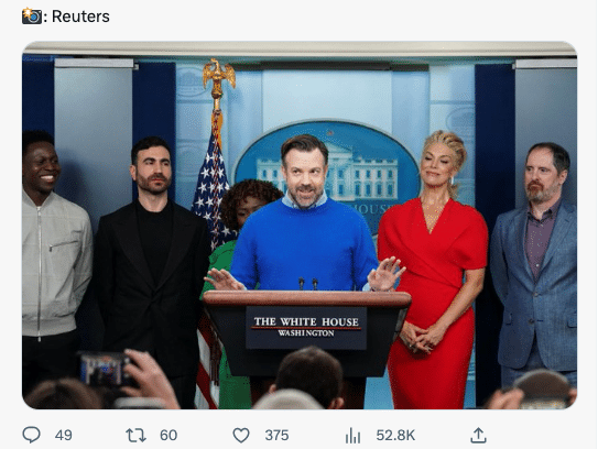 The cast of Ted Lasso, the hit Apple TV+ show about a fictional British soccer team, came to the White House to meet with President Biden and talk about mental health, a major theme of the show. They also made a brief appearance in the White House press briefing room. MindSite News culture writer Sarah Henry looked at the series and its depiction of mental health issues last year in an award-winning story, On the Couch with TV’s Ted Lasso. The third season just began streaming March 15, so it's a good time to re-read it.